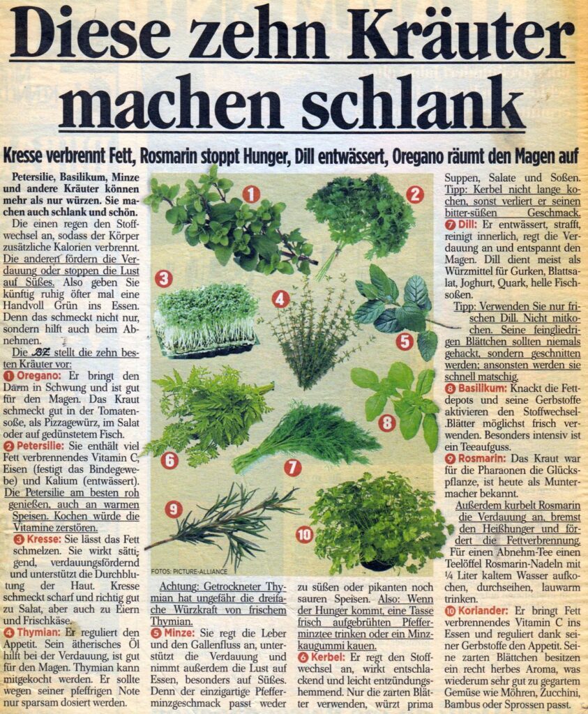 Grünzeug zu Mümmeln – wer an deren Wirkungen glaubt, kommt wahrscheinlich in den Himmel! Diese 10 Kräuter machen schlank