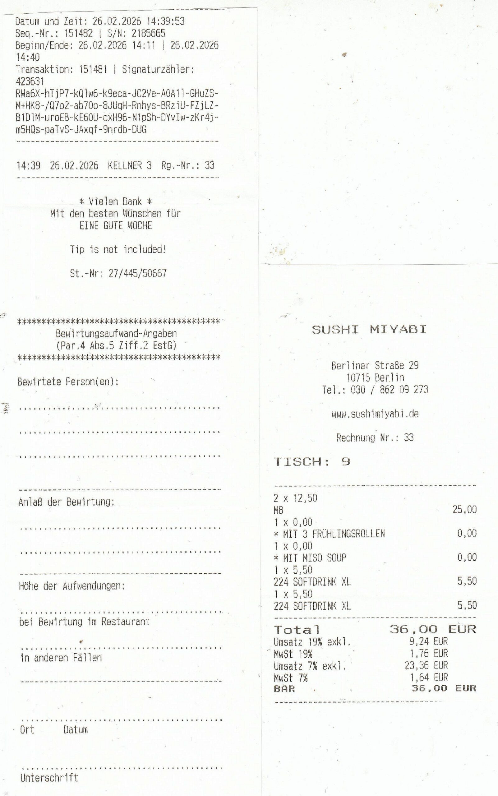 – Zum Mittagsmahl hieß es dann – 40 EU, allerdings mit einem winzigen Schmackes!